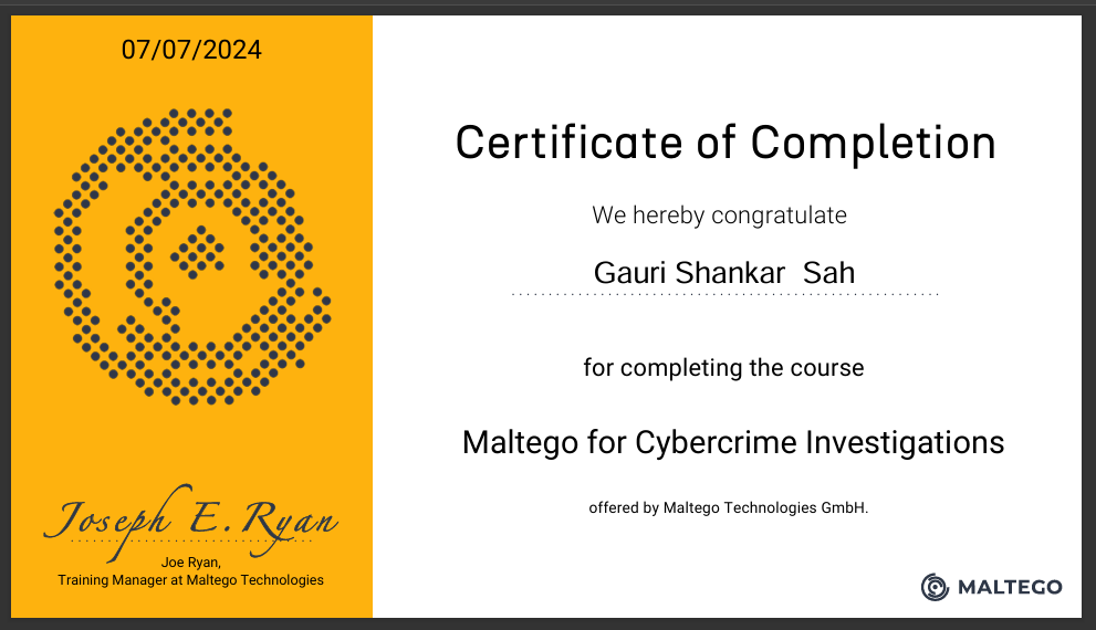 Certified in using Maltego for cyber threat intelligence, link analysis, and open-source intelligence (OSINT) investigations.
