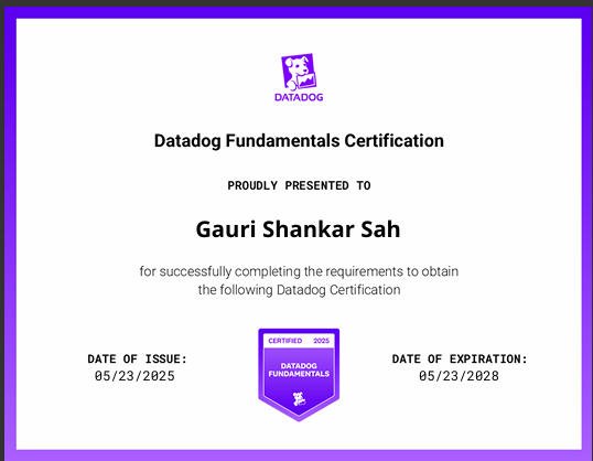 Validates foundational knowledge of Datadog’s core features, including monitoring, dashboards, and agent configuration..